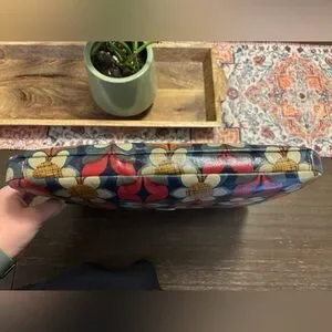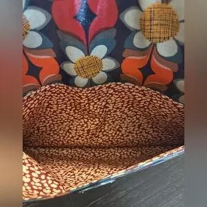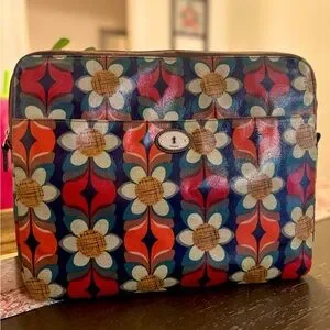 Adorable Vintage Fossil Key-Per Laptop Bag in durable coated canvas material. Vibrant Mod Floral print outside with cute red and white polka dot interior. Zip closure, works well. Outer pocket. Well loved but in great shape with lots of life left, see photos. From a clean, smoke free home. Also have matching crossbody purse in my closet, add to bundle for a great offer!