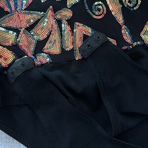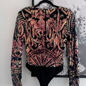 AKIRA Elegant Sequin Long Sleeve Mesh Bodysuit Top size Large