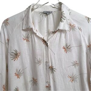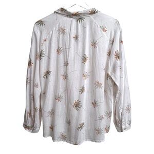 Elegant white button-down shirt. Features subtle floral design. Perfect for casual wear.