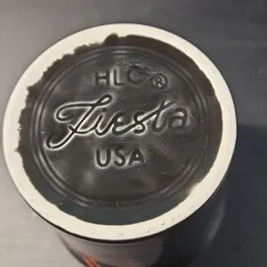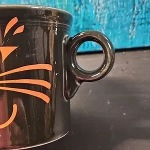 Fiestaware Black Cat Mug Fiesta Retired Black Ring Handled Tom and JerryRetired Betty Crocker exclusive Black Cat Tom & Jerry mug.The ring handled (Tom & Jerry) mug holds approximately 10.25 oz, and measures approximately 3.5" tall & in diameter. It has a small flaw near the foot but is otherwise nice. Great hard to find decal!Fiesta is a product you can feel good about! Not only is Fiesta pottery proudly made in the USA, but all contemporary Fiesta is lead free, as well as oven, microwave and dishwasher safe. Visit My eBay Store: Nettie's Dish BarnPlease note: Fiesta is pottery. As such, even first quality items may have minor flaws that are considered acceptable, as part of the hand-crafted nature of pottery. Fiesta is a registered trademark of The Homer Laughlin China Company. Nettie's Dish Barn is not affiliated with, endorsed or sponsored by the Homer Laughlin China Company.