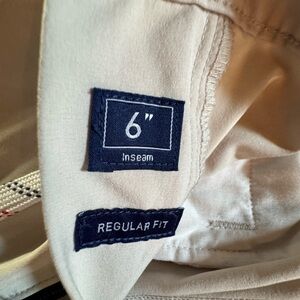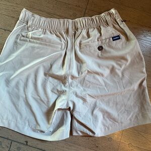 Comfortable tan cargo shorts. Elastic waistband with drawstring. Ideal for casual wear.