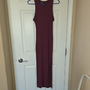 Lulu's Burgundy Ribbed Halter Maxi Dress Comfy Cool Classic Summer Staple Sz M