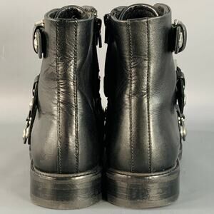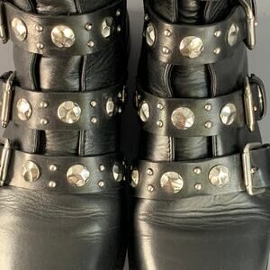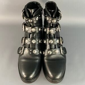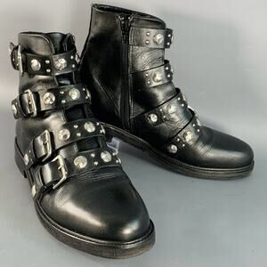 MAJE Size 9 Black Leather Studded Belted Side Zipper Military Ankle Boots
