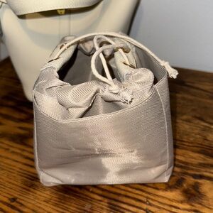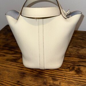 Elegant Cream Bucket Leather Handbag with Gold Accents. Very good condition.