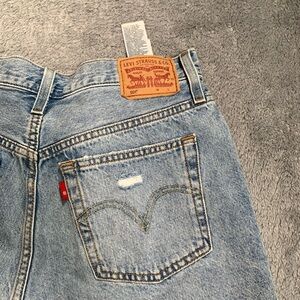 Levi's 501 Blue Distressed Jean Shorts