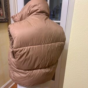 Stylish, cropped tan puffer vest with a zip closure. Perfect for layering. Tags have been removed. Size medium