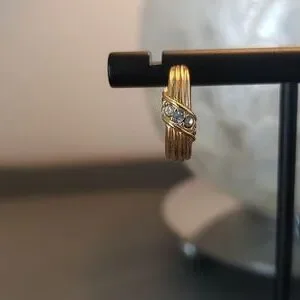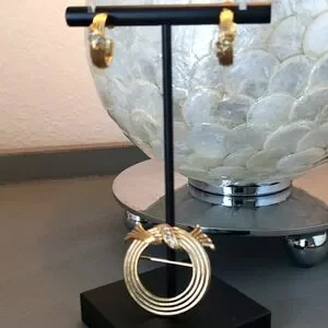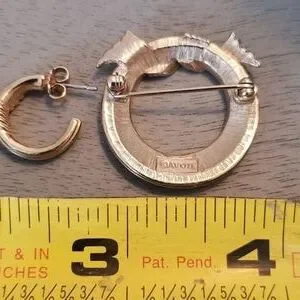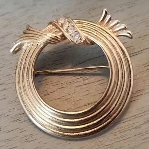 Vintage Avon jewelry set. Circle pin with sparkle and matching pierced earrings. Ribbon style with crystal enhancement on pin. Cute set to dress up or down. Circa 1970's-1980's.