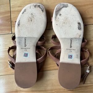 Larroude Brown Leather Flat Sandals Straps Size 7.5 Brazil