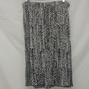 Tiered Maxi Skirt Black & White Cinched Waist Tie w Wood Beads Boho Whimsigoth