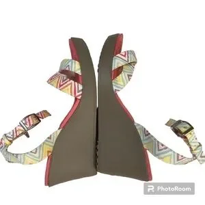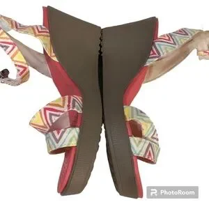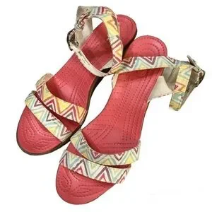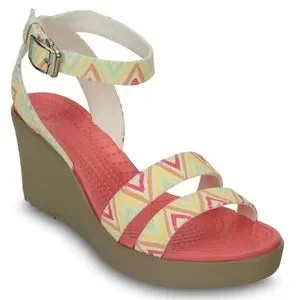 Crocs Leigh Fabric Multicolor Geometric Ankle Strap Platform Wedge Sandal Size 9