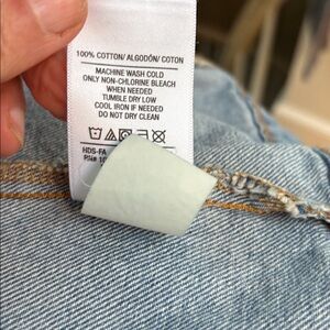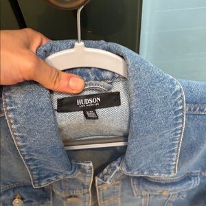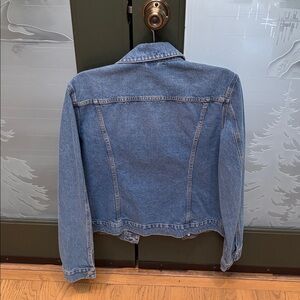 Stylish denim jacket with button closure. Perfect for casual wear. Runs small. Should be good for medium to large. Wore twice only. No flaws.