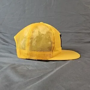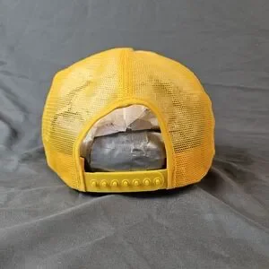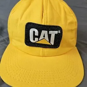 Iconic vintage yellow CAT (Caterpillar) licensed product trucker hat. Features the classic black, white, and yellow logo patch and breathable mesh back. True workwear essential that perfectly crosses over into trendy streetwear, Y2K, and 90s aesthetics. Made in the U.S.A. - a quality retro find!