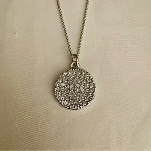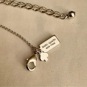 Chic Kate Spade necklace with a sparkling silvertone pendant with cubic zirconias. Beautiful and ideal for elevating any look. On the back the pendant is inscribed “In A Twinkling”. Adorable clasp. Measures approximately 20.5” long but has multiple settings so you can wear it at a shorter length if you prefer. Minimal signs of wear; only worn a few times. Elegant, preppy, classic & classy.