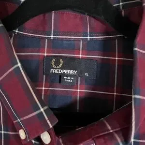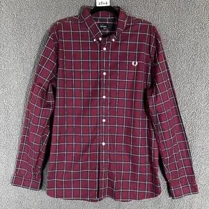Fred Perry Plaid Cotton Button Down Long Sleeve Shirt - Men's Size XL - Red