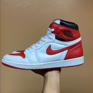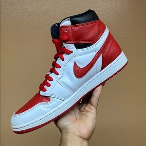 Experience the timeless appeal of these Air Jordan 1 sneakers, featuring a striking red and white colorway. These sneakers boast a premium leather construction with bold overlays, ensuring both durability and style. Perfect for sneaker enthusiasts, they offer a classic look that never goes out of fashion.