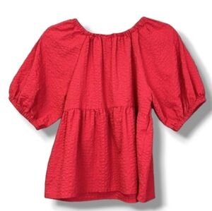 ✨NWT!! Old Navy Bright Red Women's Seersucker Babydoll Puff Sleeve Top