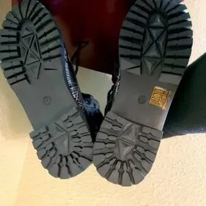 Biker Style black boots featuring Jack Skellington design with orange pumpkin accents. Perfect for fans of nightmare before Christmas These Jack Skellington boots are size 6 1/2 women’s they have padded back on the ankle as shown in the last picture. Brand new never worn sorry no tags.