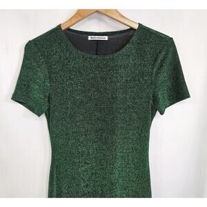 Reformation Amina Green Metallic Fleck Short Sleeve Mini Sheath Dress Medium. Excellent pre-owned condition with no rips, stains or tears