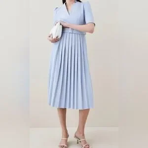 Karen MillenStructured Crepe Forever Pleated Midi Dress NWT Size 6