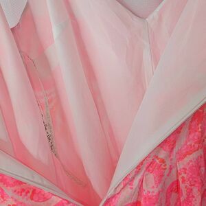 Features: Pink and white swirl print, Spaghetti straps, Sleeveless, Lined