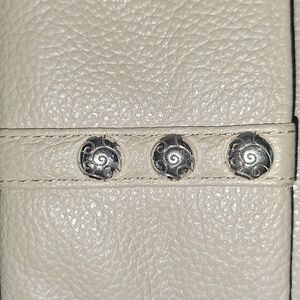 Chic cream wristlet with stylish silver button accents. Brighton's unmatched quality shines in this beautiful wallet. Once you get your hands on this beauty you'll be able to feel how buttery soft the leather is.
