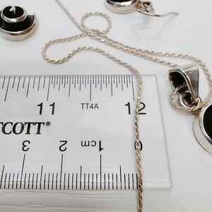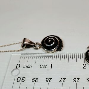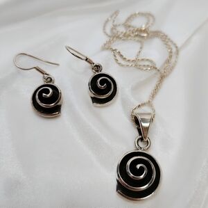 Vintage Mexico Sterling Silver Modernist Spiral Pendant Necklace Earring Set 20"