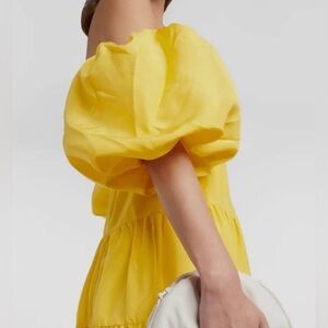 Rebecca Vallance New Izzy Tiered Ruched Silk Taffeta Mini Dress Size US 6. Measurements shown in photos.