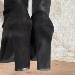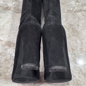 Stuart Weitzman Highland Black Suede over the knee heeled boots with tie.