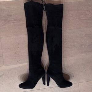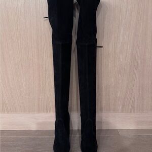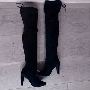Stuart Weitzman Black Suede thigh high boots with tie size 6.5