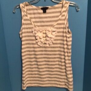 Tommy top, gray and white stripes with decorative white flower cutouts on the edge of the 3 button up. NWOT
