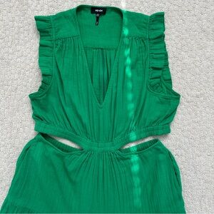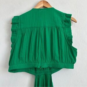 Me + Em Dress 12 Maxi Cheesecloth Cut Out Pockets Tiered Sleeveless Ruffle Green