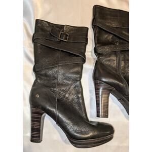 UGG Jardin Women's Black Leather Platform Heeled Boots Side Zip 1004150 Size 7.5