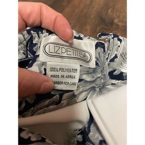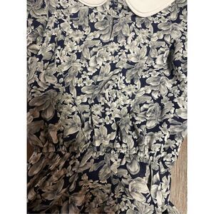 Vintage blue and white with belt. Stretchy waist. Small flower on the front. This dress is so feminine and cute!