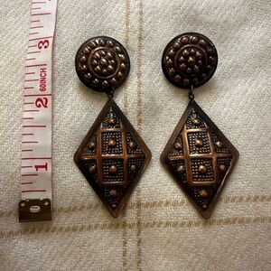 Elegant bronze earrings with a geometric design. Perfect for adding a vintage touch to any outfit.