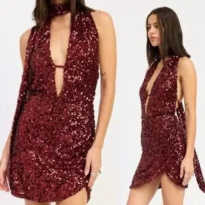 Cherry Bomb Halter Scarf Sequin Mini Dress