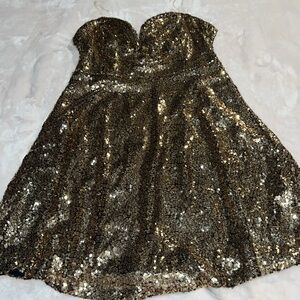 Charlotte Russe Strapless Cocktail Party Gold Sequin Dress Large