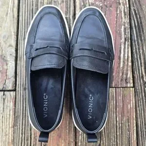 Vionic Womens Uptown Black Leather Loafer, Slip-on, Sz 10 Wide