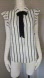 Chic blouse with vertical stripes. Features a black bow and flutter sleeves. Ideal for versatile styling.