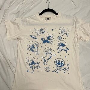 NWOT Comfort Colors Cream Dogs in Space Shirt Funny Dog T-shirt Oversized Size M