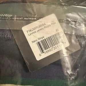 Lenox rugby polo with navy and green stripes. Classic and comfortable.