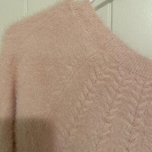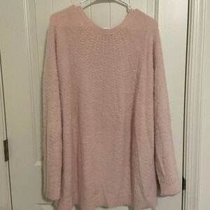Women’s Chico’s sweater. Sweater is pale pink in color with a plush knit material. This sweater is sooo incredibly soft!! Size 3, which is a size 16 XL. Smoke free home!