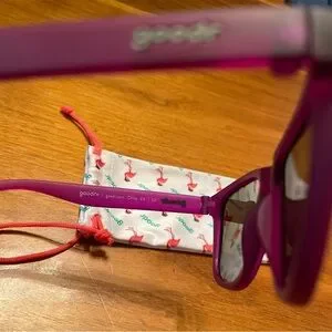 Goodr Sunglasses - amazing condition, never been worn! OG style with polarized lenses. color is called “Gardening with a Kraken”, which means magenta. Comes with Goodr cloth sunglasses carrying bag featured in the pictures.