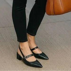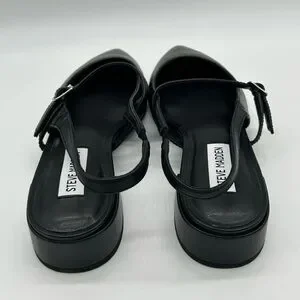 Step into timeless elegance with these brand new Steve Madden Christyy slingback flats. Crafted in sleek black faux leather, these pointed-toe Mary Jane style shoes feature an adjustable strap for a secure fit and a low block heel for all-day comfort. Perfect for work, casual outings, or chic weekend looks, these versatile flats bring style and comfort together.