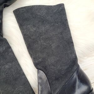 Vintage Markon Suela Black Leather Floral Embossed Tall Boots Women's 8.5 Wide