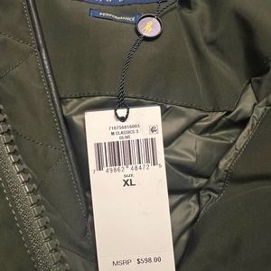 Concealed zip front with buttoned storm placket