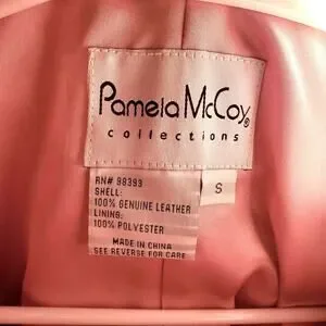 Vintage Pamela McCoy Pink Classic Quilted Leather Coat Size S Lined 2 Pockets