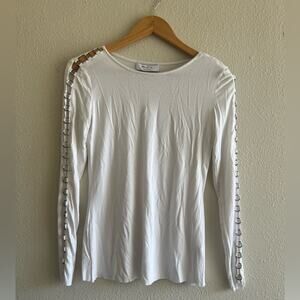 Bailey 44 hooped long sleeve white top size Small grunge neutral