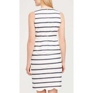 J. McLaughlin Sz 4 Providence White Blue Striped Sheath Dress Tiered Scalloped