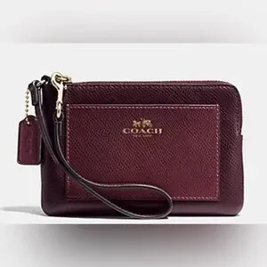 Coach Burgundy Two Toned Leather Wristlet