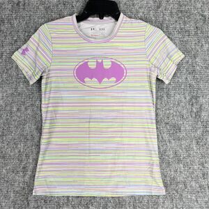 Batman Shirt Girls Large Purple Youth Under Armour Fitted Heatgear UPF 30+
